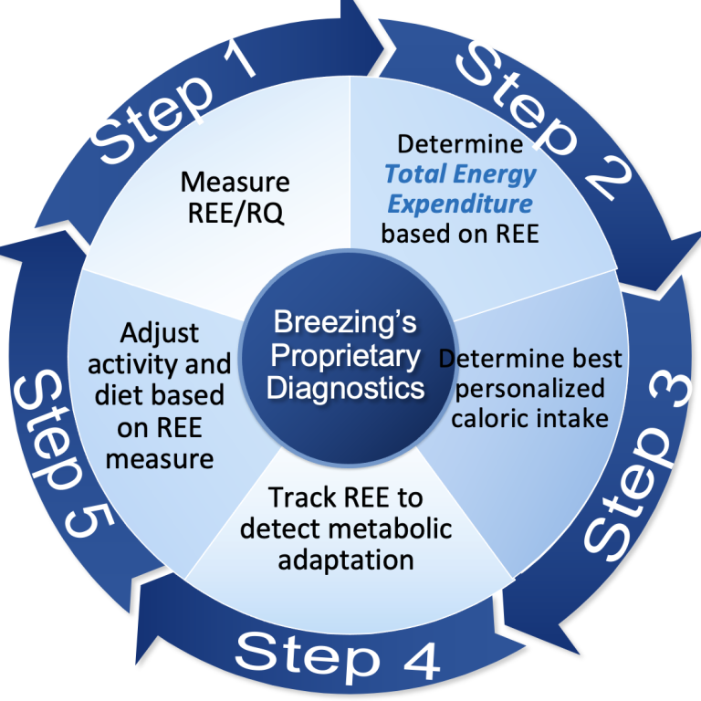 Dankzij de Breezing app, met de mogelijkheid tot rapportage en cloudopslag, kan het in slechts enkele minuten fundamentele gegevens detecteren voor een nauwkeurige structurering van een voedingsdieet.